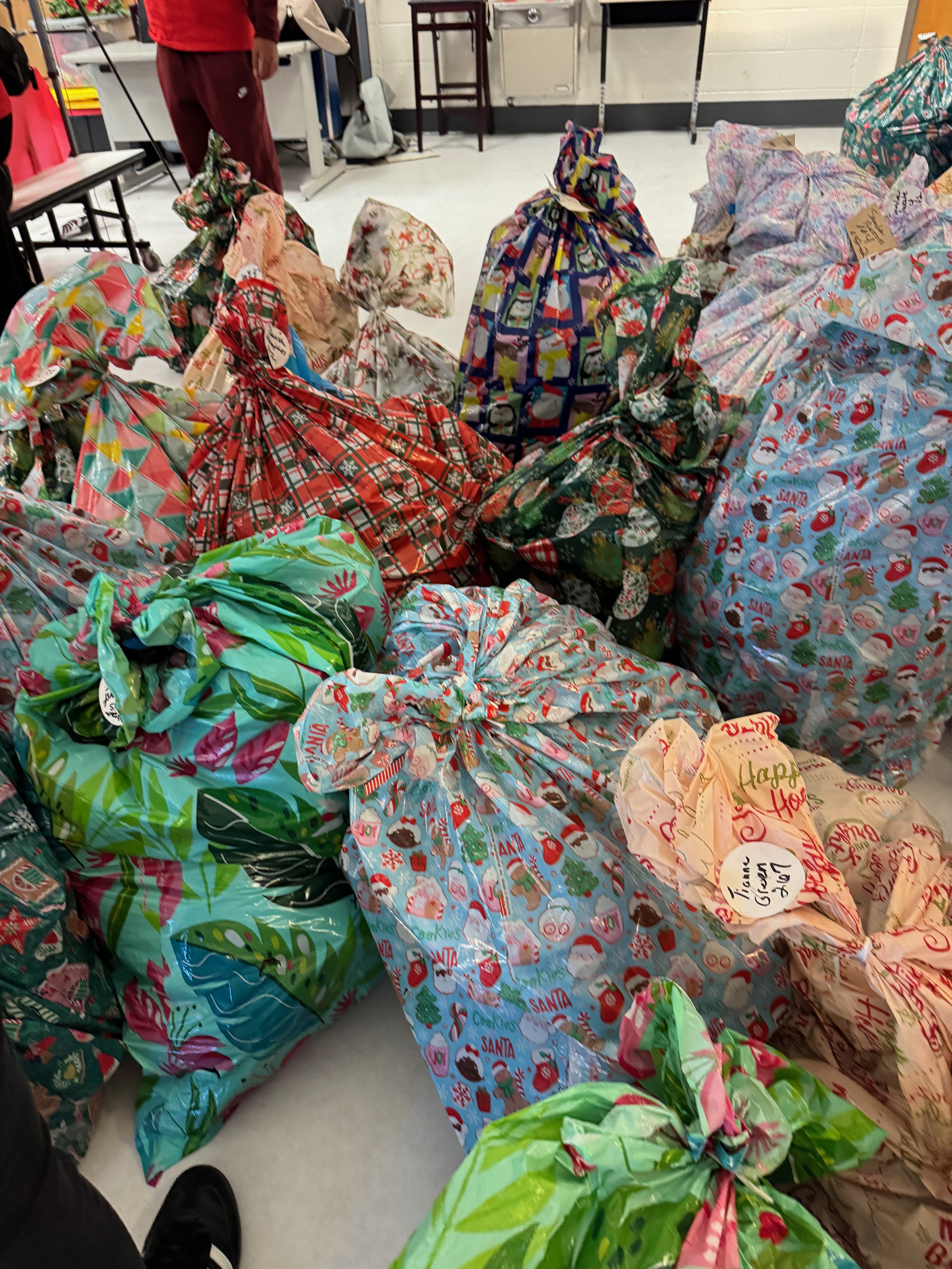 Donated coats and winter items prepared for distribution as part of the Rotary Club’s Christmas Coat Drive, helping ensure families stay warm during the winter months.
