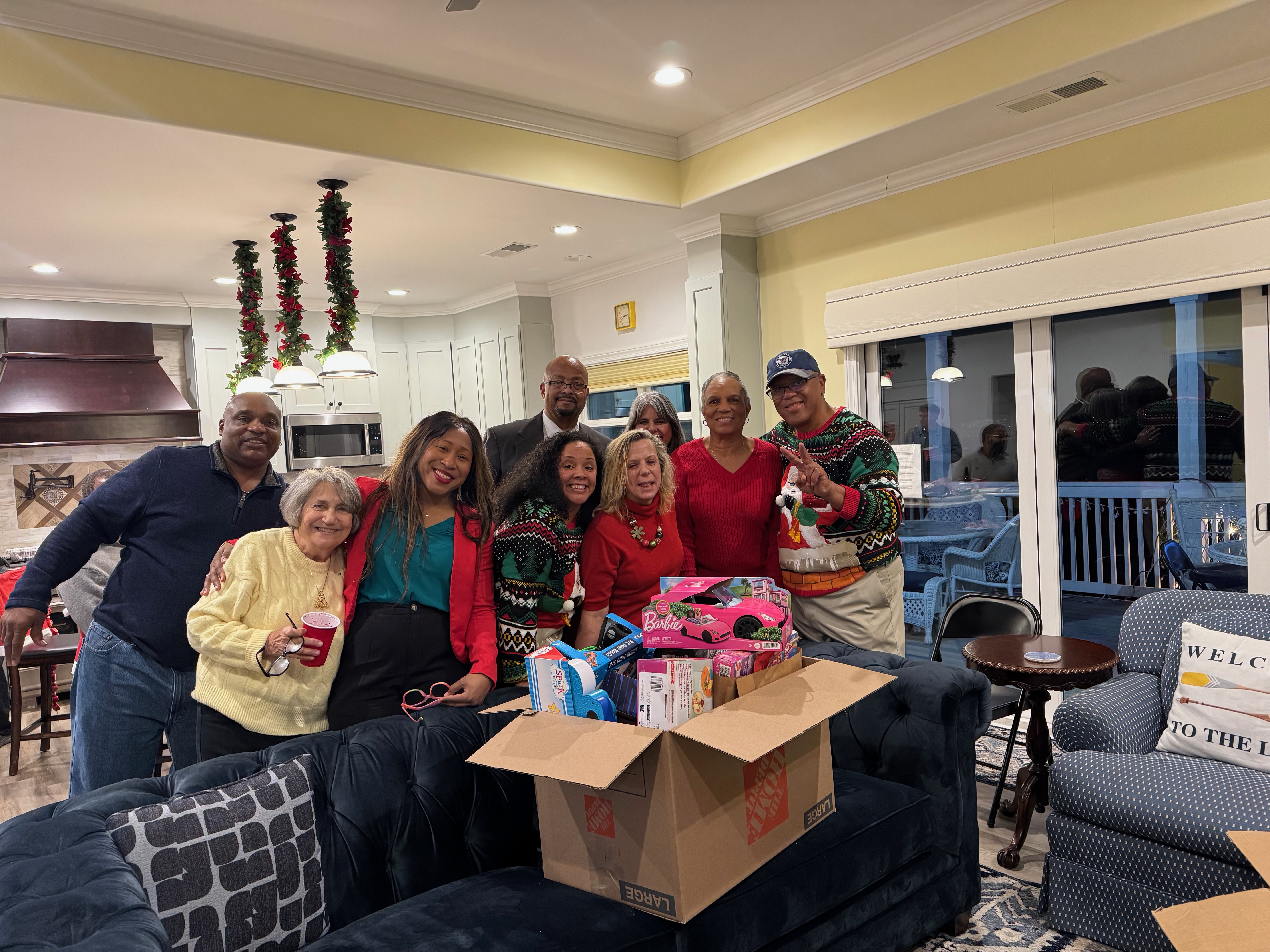 Rotary Club members gather during the Christmas season to support local families through a holiday giving initiative, combining donated items and financial support to meet community needs.